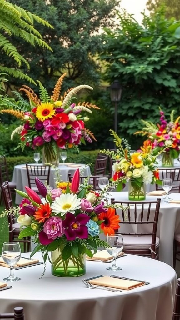 For your own outdoor celebration, consider mixing seasonal flowers for that fresh, whimsical touch. Choose unique vases too; they can add a special flair. Don’t shy away from bold colors—play with bright pinks, yellows, and greens to bring your tables to life!